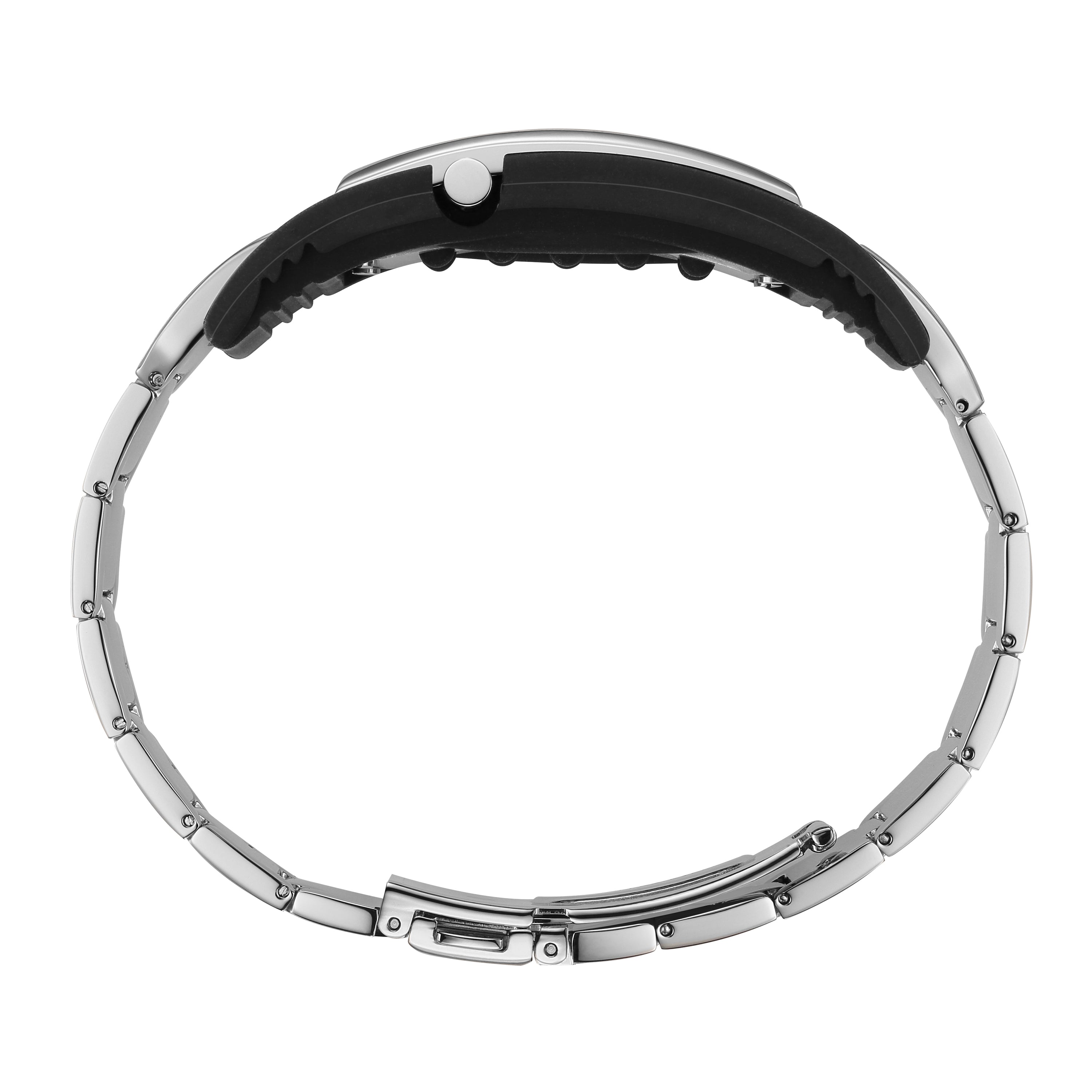 To complement the M2's streamlined profile, we've paired it with a steel-toned stainless steel strap, adding a unique textured element to its clean design.